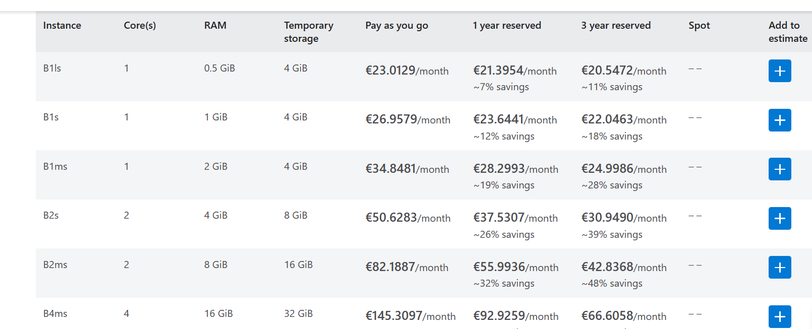 Створювати віртуальну машну можна з меню “Virtual machines”. Але перед цим потрібно вибрати, який образ віртуальної машини вам потрібен. В меню стоврення робити цей вибір дуже не зручно, тому бажано спершу вибрати. Про доступні образи віртуальних машин можна отримати інфомрацію за лінком: Linux Virtual Machines Pricing. Тут можна задати ряд параметрів і отримати список доступних конфігурацій та їх опис, ну і вирати ту, що вам потрібна. За замовчуванням зразу пропонують linux машни. Я теж пропоную вибрати найдешевший Linux образ з широким community. Тому зразу іду на каталог образів для ОС Ubunta. На pic-20 показано приклад таблиці образів та їх ціна за місяць експлуатаціх так би мовити “без зупинки 24*7”. В навчальних цілях, якщо будете вимикати ресурс, кои ви з ним не працюєте ви цього прайсу не досягнете.