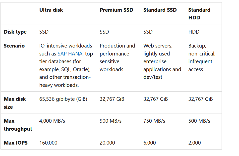 Крім того, потрібно визначитися з типом диску. Майте на увазі, що вам за замовчуванням пропонується Premium SSD хоча в більшості випадків вам потрібен звичайний standard SSD. Доступна таблиця дисків показана на pic-21, а о прайсингу не знайшов. Судячи з усього прайсинг на диски складається з кількох складових.