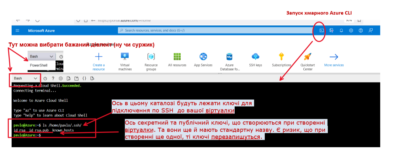 Єдине, що мені в цьому не подобається, що коли ви створюєте це все щерез хмарну консоль, то RSA ключі для підключення по SSH будуь залишатися в хмарі. А я планю підключатися до vm з локального laptop по SSH на пряму. На pic-23 показано
