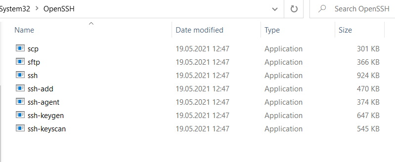 В резульаті цих операцій у вас повинен появитися каталог C:\Windows\System32\OpenSSH з переліком файлів як на pic-24