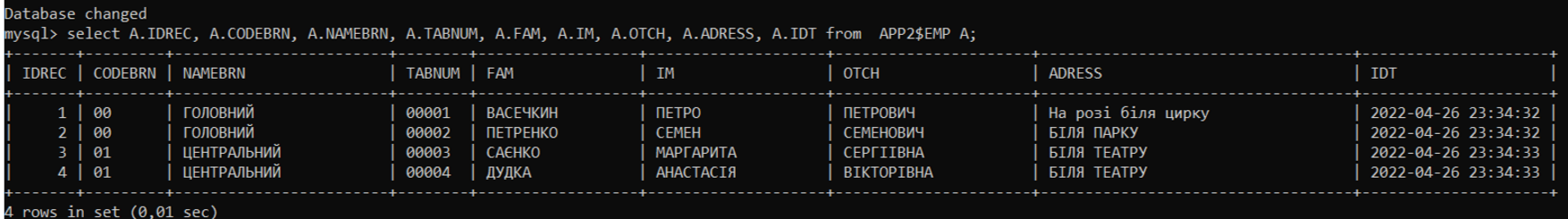 Далі, якщо все налаштовано коерктно, то виконаємо select з data-ins1.sql