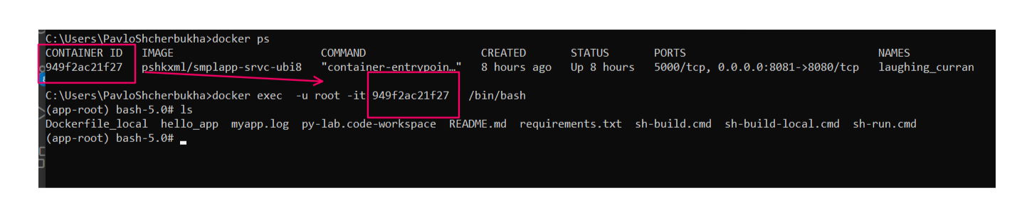 Тепер спробуємо запустит цей образ на локальному компютері , та подивитися, що відбувається в середені контейнеру. Запуск контейнеру виконуться командою: