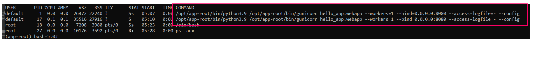 docker run -e APP_MODULE="hello_app.webapp" -e GUNICORN_CMD_ARGS="--bind=0.0.0.0:8080 --access-logfile=-" -p 8081:8080 pshkxml/smplapp-srvc-ubi8