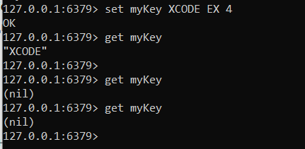 Встановити ключ, що “живе” протягом визначеного часу. На прикладі, що показано, видно, як встановлено значення ключа на 4 секунди. А потім, через якийсь час - ключ “пропадає”