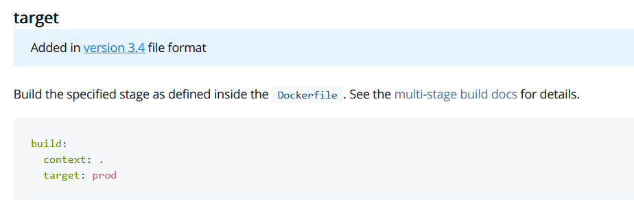 Ось останню особливість і використаємо. А при старті docker-compose вкажемо, яка stage мається на увазі у тезі target : Compose file version 3 reference