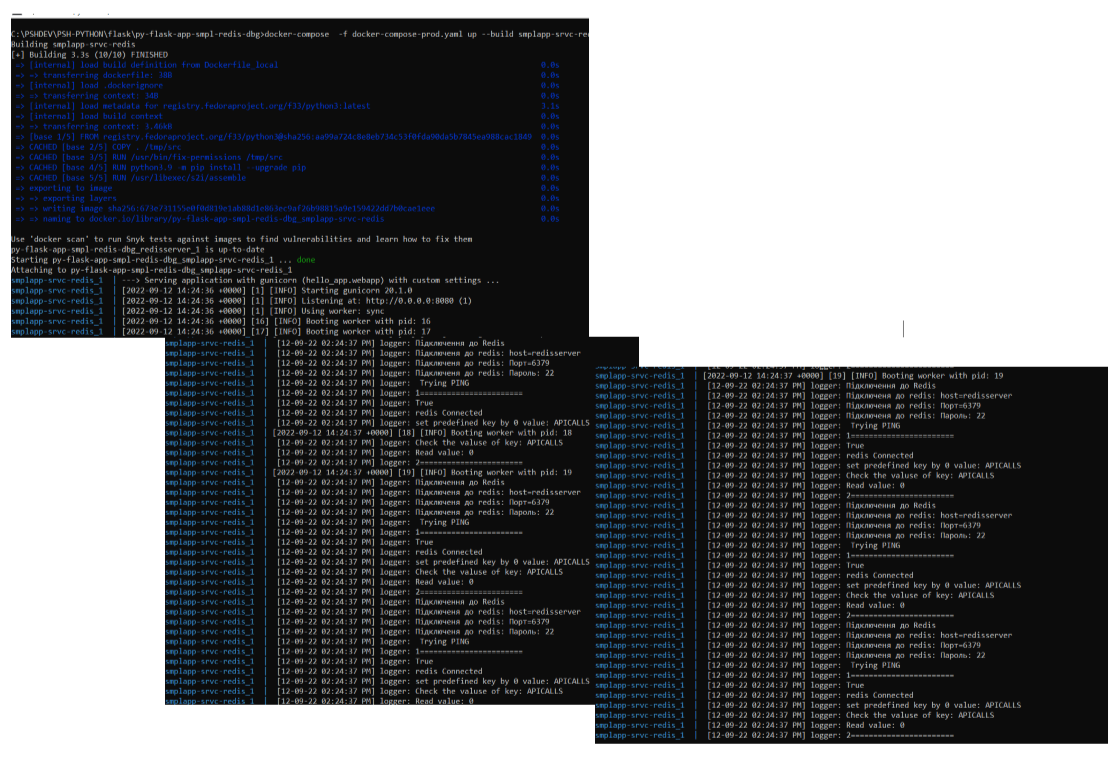 Якщо ж виконати запуск в продуктивному режимі, то на pic-08 видно як воно швидко стартує, та ще й в 4 потоках (там для кожного pid в лог записується).