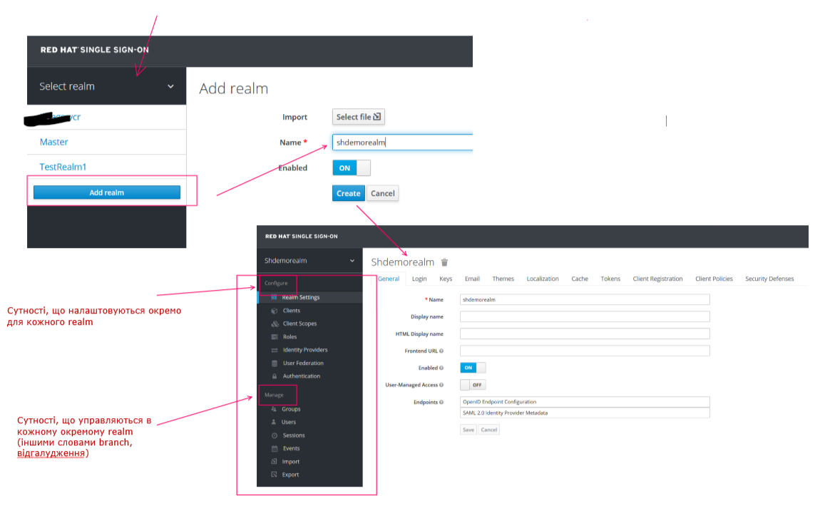 Адміністрування в keycloak ділиться на realm-и.