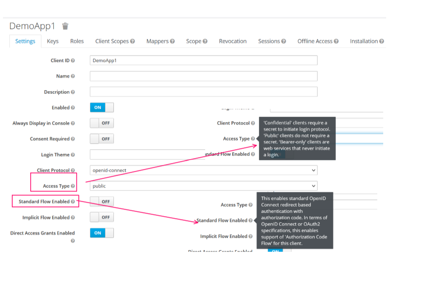 Тут треба звернути увагу на Access Type=public при логіні не поребує client Secret. А при Access Type=confidential потребує client Secret. Зараз залишаємо public.