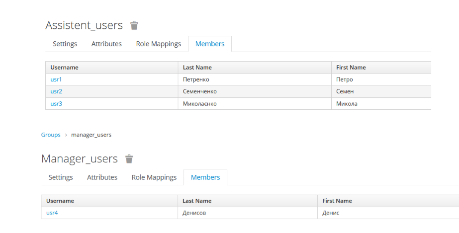 На цьому етапі співставлення: користувачі-групи-client roles виконано. можна переходити до етапа тестування логіну та отримання авторизаційногг токену.