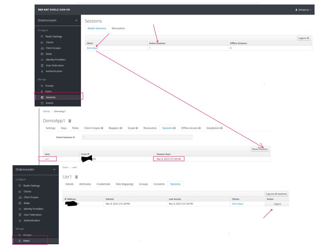 Ну а якщо зайти в меню sessions або users, то можна побачити всі підключені сесії жо жаного клієнта, та є можливісь всіх, або окремо взятого користувача - відключити pic-17.