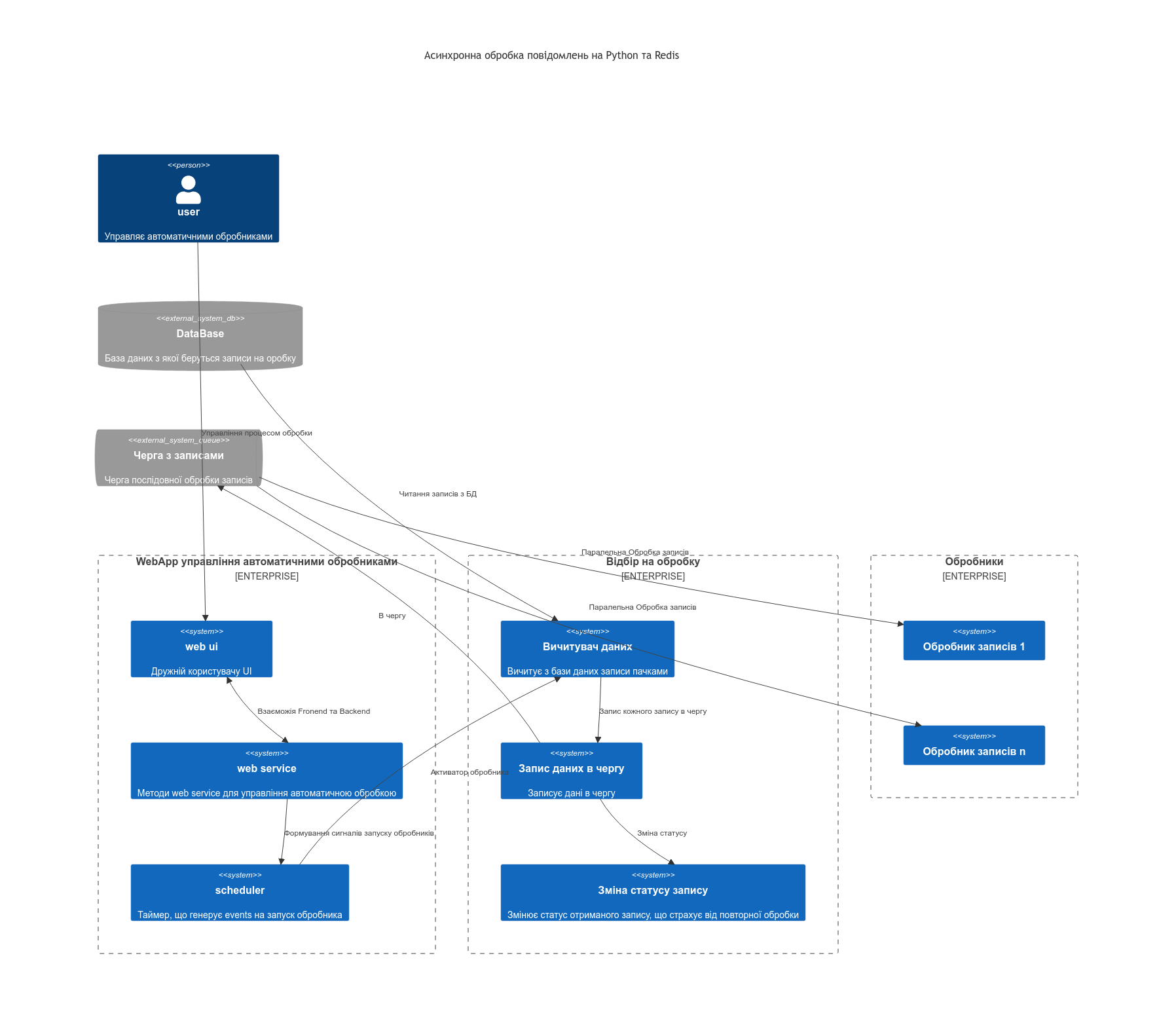 Потрібно розробити автоматичний обробник, який буде запускатися та зупинятися користувачем через Web UI інтефейс. При цьому, наступний цикл обробки запускається після зауінчення попереднього та після деякого часу очікування. Основні обробники можуть працювати в паралель і можна запараметризувати кількість паралельних обробників.