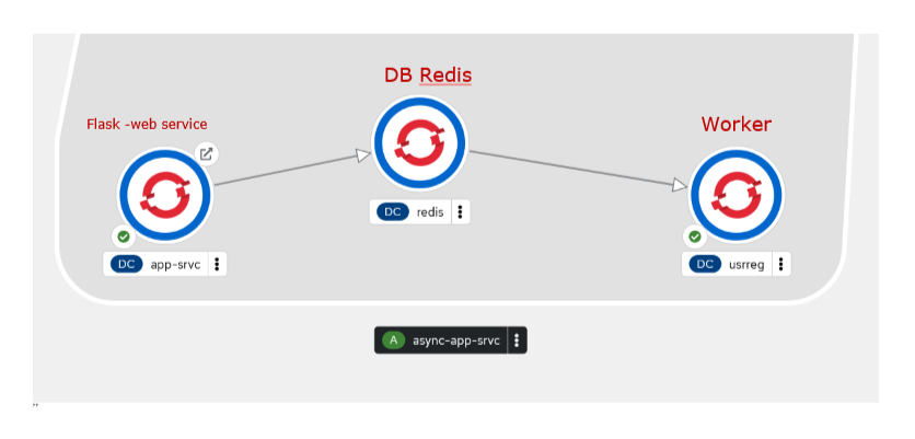 Приклад знаходиться в репозиторії: flask-redis-rq Async workes using redis and flask and redis queue Цей прототип складається з Web форми, в яку вводяться кілька реквізитів. По команді submus виконується http метод post та отримує введені дані у вигляді json (dictionary). Отримані дані поміщаються в чергу з простим обробником, який вичитує праметри форми та виводить отримані дані в лог. Ну і все задеплоєно в OpenShift. На pic-01 показано як виглядає задеплоєний проект