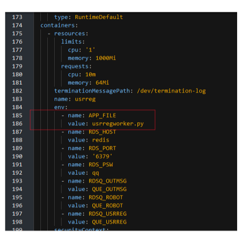 Тепер цей worker деплоється в окремий контейнер і запускається як окремий процес. Deployment відбувається по шаблон в стандартний UBI8 контейнер від RedHat. Шаблон знахдиться в катлозі openshift openshift/async-worker-templ.yaml. Тут все будується по шаблону, а параметризація вібувається в cmd файлі: