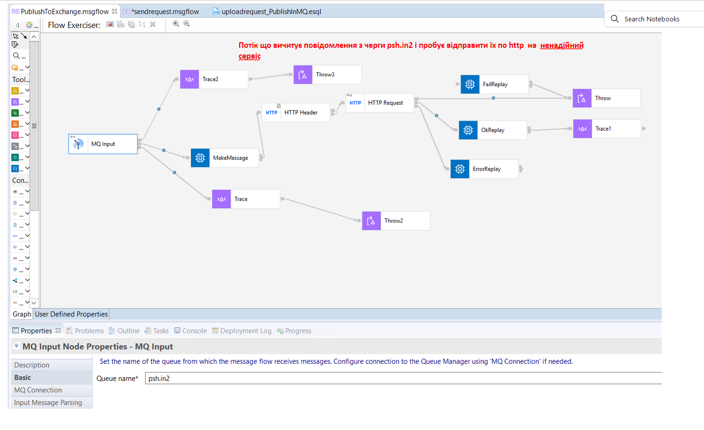 На pic-202 показано flow, що вичитує JSON з чреги psh.in2 та пробує відправити його по http. Якщо виникне помилка, то повідомлення буде повернуто в чергу psh.in2.