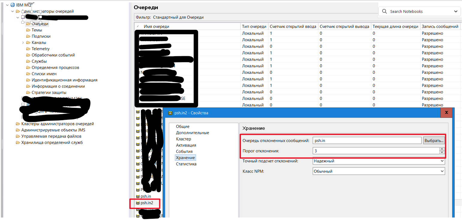 Якщо на рівні MQManager не зробити спеціальних налаштувань то повідомленя повернеться в чергу psh.in2 і так буде до повторюватися до тих пір, поки не досягне кількості спроб, щоб влетіти в системну чергу мертвих повідомлень (Dead-Letter Queue - SYSTEM.DEAD.LETTER.QUEUE) менеджера черг, якщо вона налаштована.