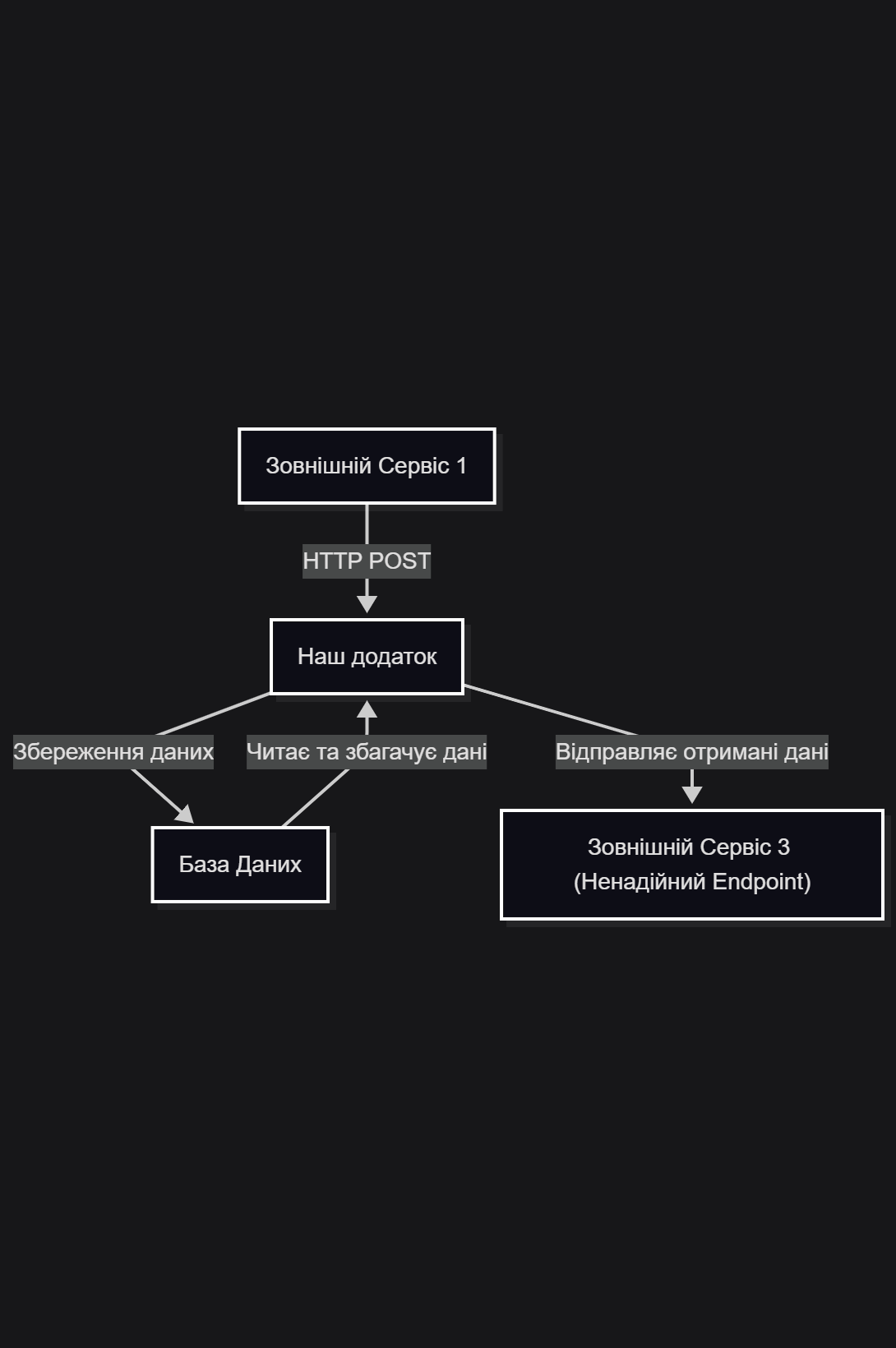 Зовнішній Сервіс 3 (Ненадійний Endpoint): Це той самий "вередливий" сервіс, який може мати короткочасні та довготривалі проблеми.
